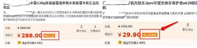 为维护淘宝网健康的市场秩序,切实保障消费者的利益,避免因商家不当使用营销工具、营销标签导致消费者混淆误认的情况发生,淘宝网决定从2017年5月26日起,逐步清理不当使用营销工具、营销标签的商品,包括但不限于在商品中使用营销工具、营销标签标注“验证正品”、“淘宝推荐”、“抽检合格”等用语(如下图),请卖家立即自检自查,开展整改。一旦淘宝网发现此类商品,将依据市场管理的相关规则,对商品作下架处理,下架后仍未整改的,将对商品作删除处理。