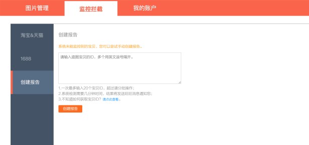 店铺被盗图后会在自动监控里看到被盗图的情况,可以手动投诉,如遇到系统没有自动识别的盗图,也可以创建报告-提交商品id进行审核。