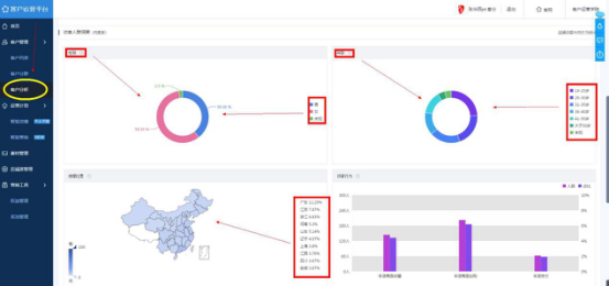 在编辑标题之前,我们先搞清楚自己的客户人群,要想标题吸引人,我们得知道客户想看什么喜欢看什么,我们再来针对性的制作我们的营销内容,怎么看我们的客户是什么样的人,我们可以通过【点击客户运营平台】,【点击客户分析】里面非常清晰的展现了你的客户男女比例,年龄大小,分布地区等。