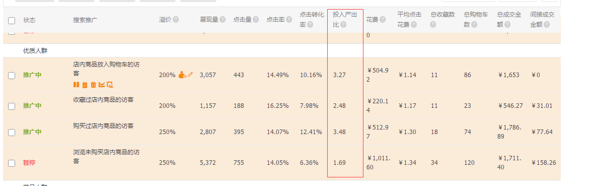 第五步:在测试人群的过程中,日限额肯定是需要逐日提高,因为会随着你的权重越来越高,你的点击越来越快,这个时候就是需要你去优化ROI的时候,把产出不太好的人群和关键词降低一些出价,没有产出的关键词和人群直接记录删除,产出好的可以提高出价