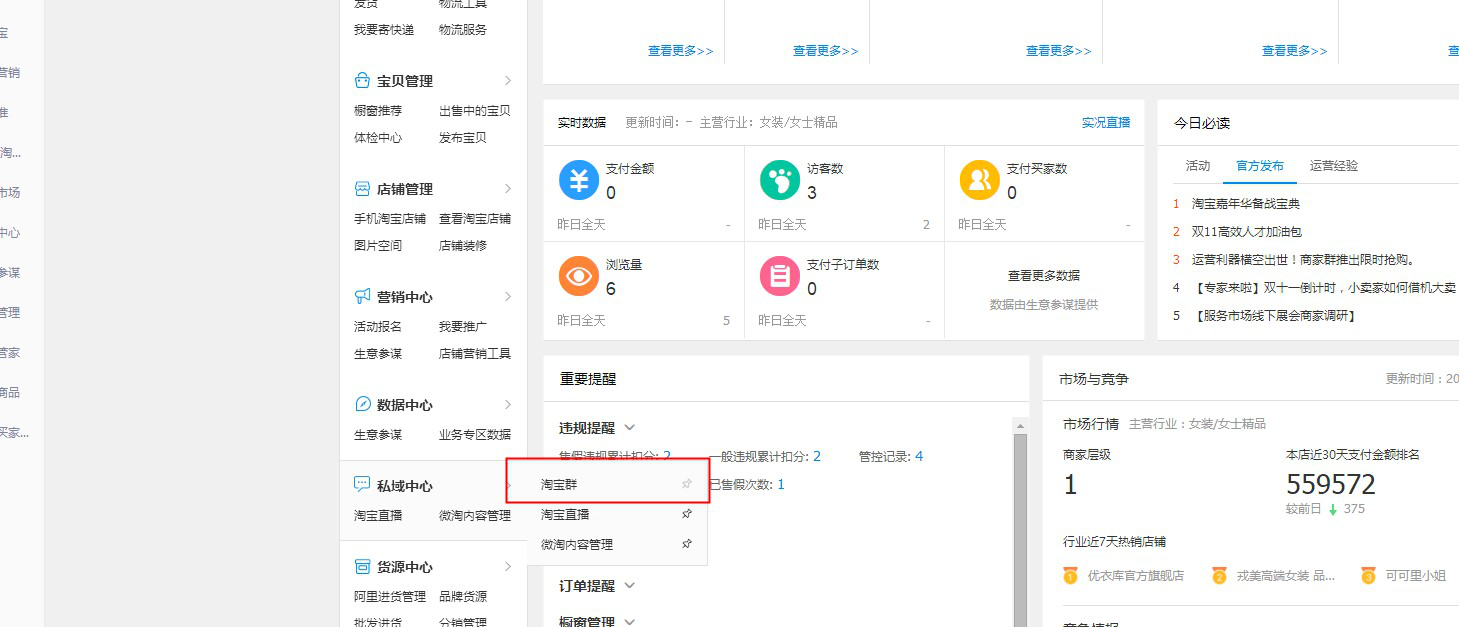 从卖家中心里可以找到淘宝群,