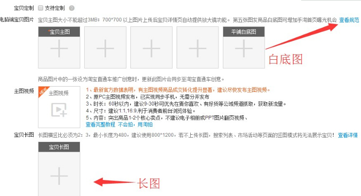 6.宝贝主图(五张主图一定要做好,服饰类目有第六张长图,有的我们就要做好发布,第五张白底要注意尺寸为800X800像素,具体可以点击查看规范多了解下白底图的作用)